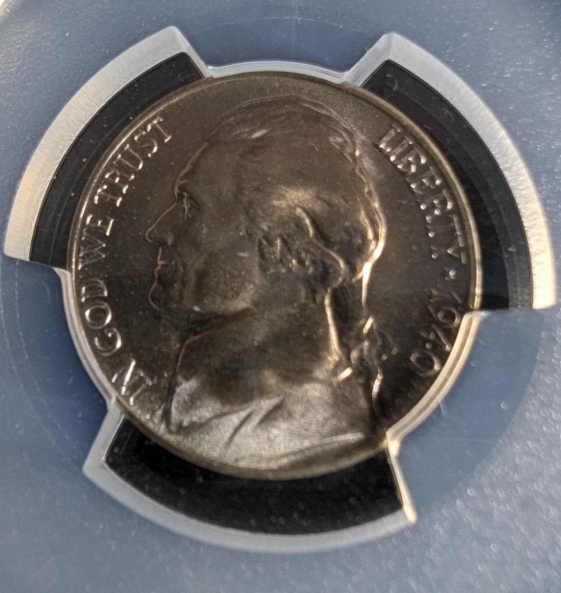 Every once in a while you get something back from a third party grading company that just makes you scratch your head. Below I present to you a Brilliant Uncirculated 1940-D Jefferson Nickel. Not a particularly rare coin, with over 43 Million of them minted, and over 100,000 estimated to survive in Mint State according to PCGS Coin Facts.